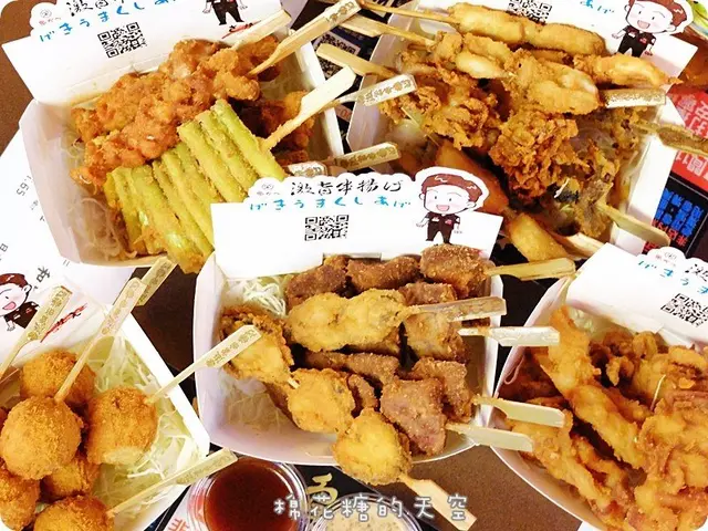 我的逢甲愛店激旨燒鳥旁又點起另一個大燈籠啦!激旨一直都是朋友來到台中我必推薦的店家之一~攤位上每一樣都美味,老闆對食材的要求也讓人拍拍手,現在老闆又推出新品牌“激旨串揚げ”~各種食材串串排開,現點現炸~搭配上各式醬料和生菜,是不是光想就覺得過癮啦?