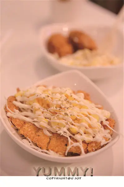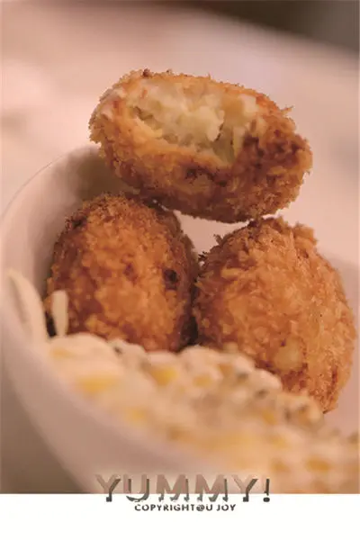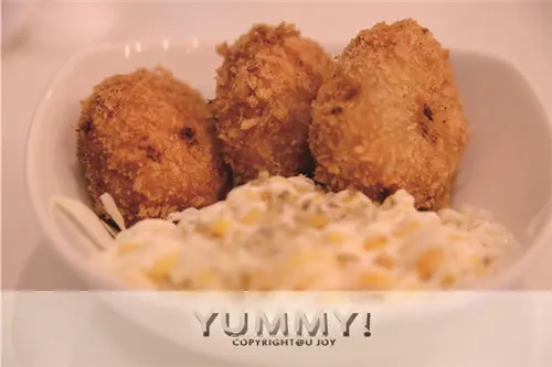 凱撒盒子的可樂餅主體是大量細軟的馬鈴薯泥,裏頭讓玉米穿插其中!