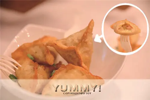 這餃子與我們中式水煮的不同,是以油炸的方式將表皮炸得酥脆!