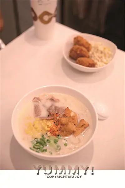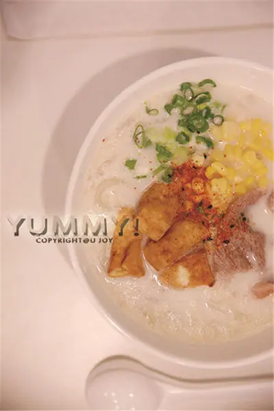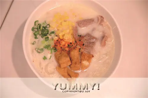 而這沉浸在這乳白起司湯汁中的,除了米烏龍麵外,還有玉米、豆干、肉片以及青蔥!