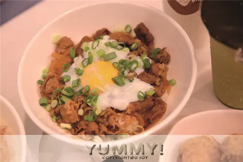 上頭滿滿的牛肉片,軟嫩的、懶洋洋的躺在淋著大量醬汁的白飯上頭