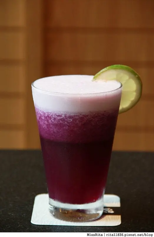 第一次看到用紫高麗做成的蔬果汁呢!主要的味道是以蘋果汁做為基底