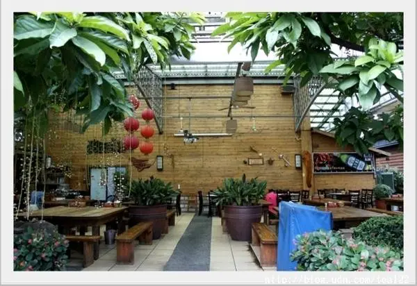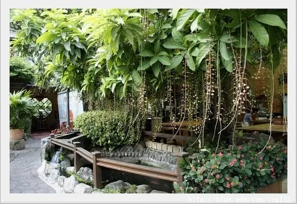 南洋熱帶植物,把位於台中文心公園旁的餐廳庭院打造成截然不同的氛圍.