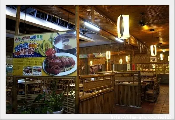 全海岸活蝦餐廳的專屬特色竹屋,古色古香的意境,增添許多三、四年級生回憶之幽情.