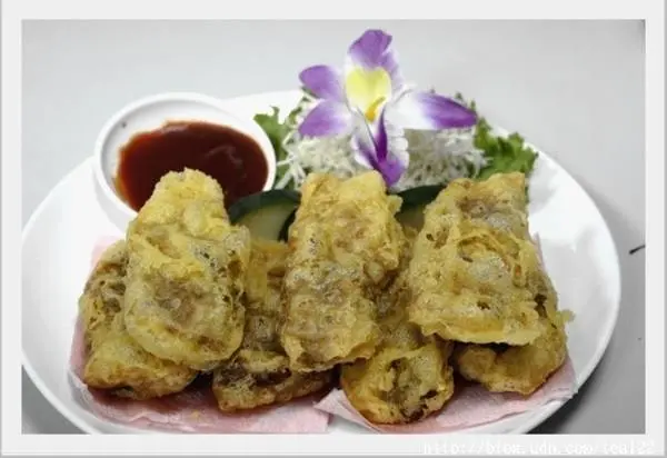 什麼是古早味的蝦卷?為了省工,許多餐廳都把這層皮改了,這堅持古法,用豬油網包的蝦卷,炸起來的口感特別的脆,帶著豬油的香氣,肉饀是新鮮白蝦剥殼和豬肉打成泥製成,很鄉土的菜餚,但是,是很細膩的工法,很令人感動.