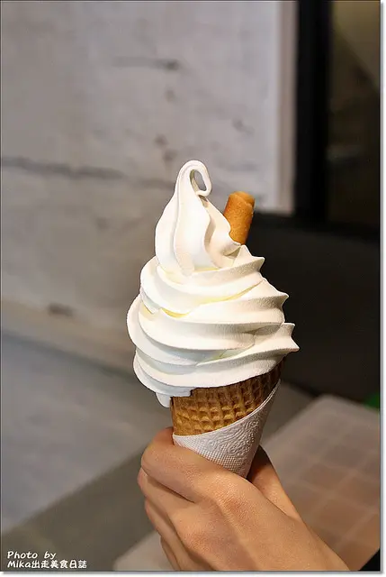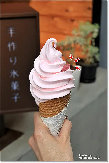 來自日本大阪的特級鹽漬櫻花搭配台灣牧場直送的新鮮牛乳做成的霜淇淋,吃起來濃郁綿密,還有淡淡的櫻花香氣,基底是新鮮的牛乳,所以有香濃的奶香味,霜淇淋中間還插著一朵鹽漬櫻花,吃起來很像酸梅,真的鹹中帶酸還會回甘呢。有著香濃綿密的鮮乳霜淇淋當基底,再加上來自日本特級鹽漬的櫻花,吃起來很濃郁的奶香帶著鹹酸甘甜的口感,蠻特別的。