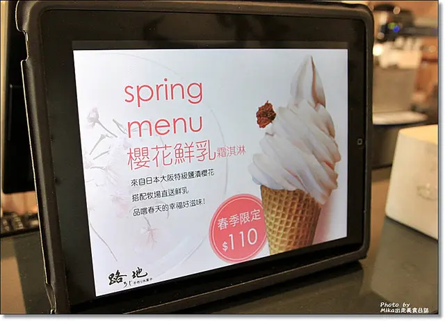 鹽漬櫻花鮮乳霜冰淇淋是來自日本大阪的特級鹽漬櫻花做成的,是春季限定款喔。店內以賣霜淇淋跟霜淇淋漂浮為主汽水類是做霜淇淋漂浮用的,底下的牛奶則是使用台灣牧場直送的新鮮牛乳,做霜淇淋基底使用。