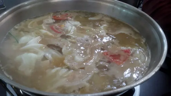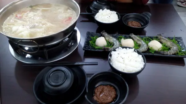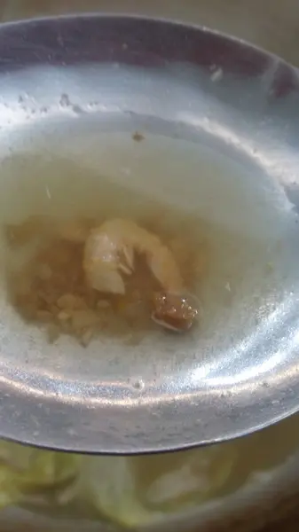 新鮮熬煮的鍋底上桌前才加入扁魚粉與蝦米的鍋底,喝一碗就發現了它的蹤跡。