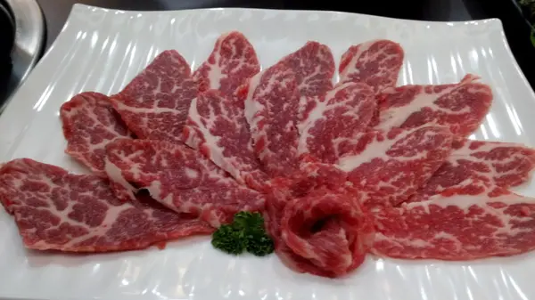 油脂分佈的很美~且是手工厚切、厚切、厚切唷~是帶厚度的牛肉耶~涮起來真的很過癮~