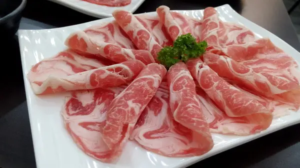 手工切的肉片就是不同,筋、肥油都事先去除了。