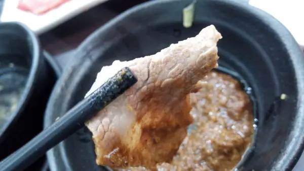 一開始涮的安格斯霜降牛肉,但要先說的是它的沙茶沾醬,