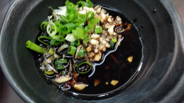 特製辣醬油,夠味 好吃~蔥、蒜、辣椒看起來都很新鮮。真的很讚。