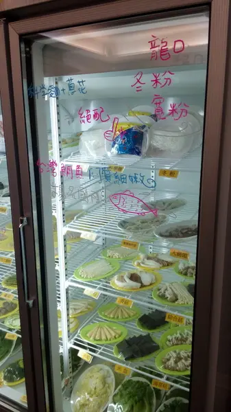 玻璃門上還有可愛介紹哩。 活潑又可愛。食材看起來都很新鮮、大氣哩。蚵仔、蛤蜊都很大顆。