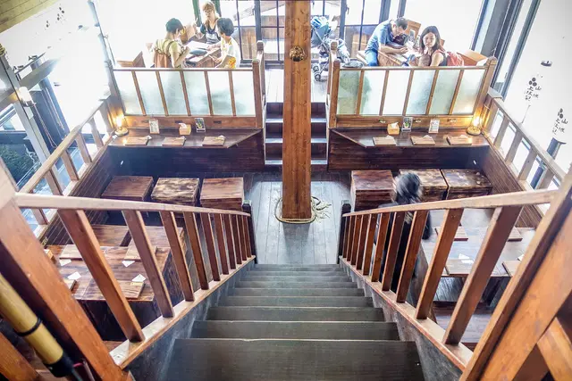 外觀是斜屋頂 內部裝潢則是仿造船艙