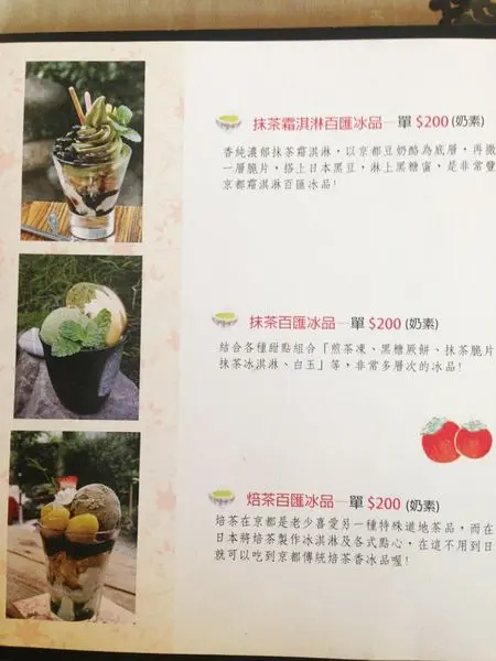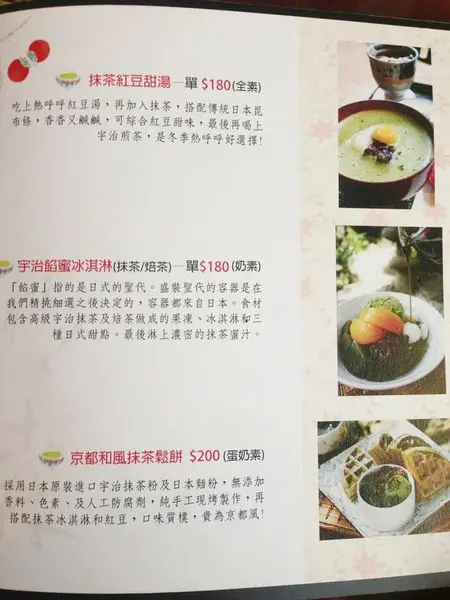 明森宇治抹茶專賣店的menu很厚一本,供應的食物很多,甜點看起來都好吸引人