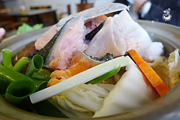 整個鮭魚鍋的份量其實有點大,吃到整個很撐,好像有一條鮭魚在胃裡面游泳