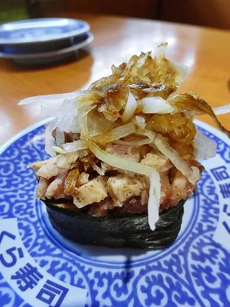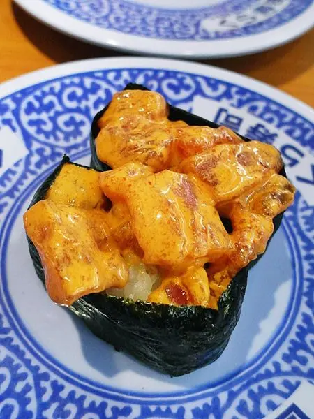 這盤是在迴轉台上看到覺得很誘人,結果它也是我們今天吃到的前三名之一