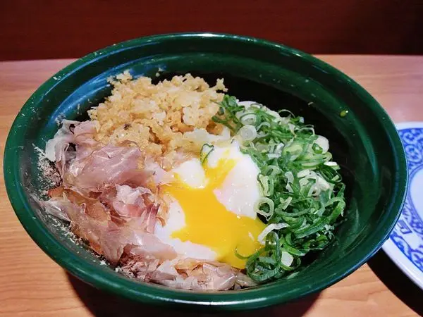 把半熟的蛋跟醬汁 蔥花等拌勻後 味道我們覺得不錯 烏龍麵吃起來股溜Q彈