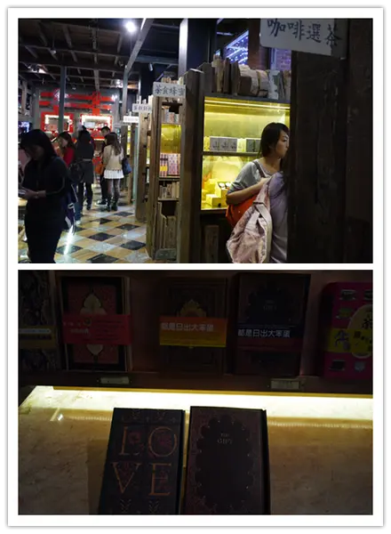 書櫃上陳列著一排排精美的原文書,仔細一看,竟全都是各式名產伴手禮,
