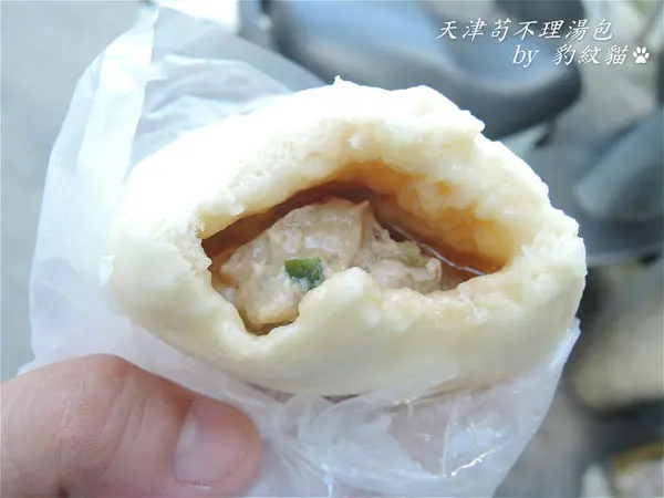 擋不住湯包的呼喚,立即隨意在路邊選了個空曠處,直接站立著品嘗【天津苟不理湯包】。