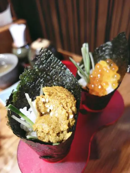 有鮭魚卵手卷跟海膽手卷