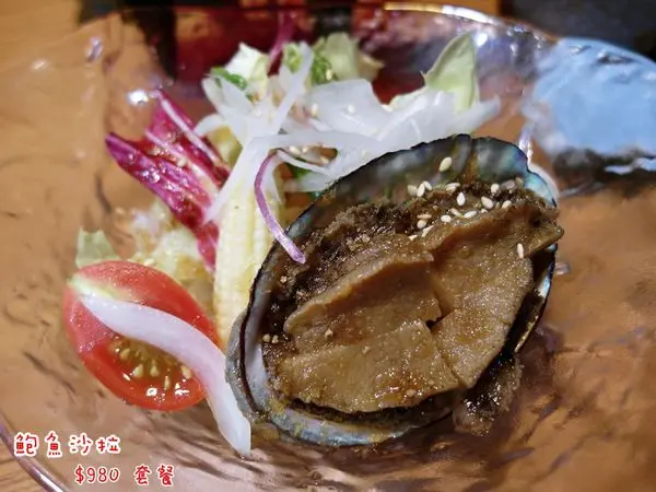 鮑魚沙拉放了整顆飽滿的鮑魚 料理的很入味 吃起來Q彈鮮美