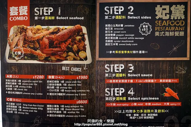 台中的<妃黛美式海鮮餐廳>的前身是<冰果甜心>,阿偉2015年就來造訪過一次,後來又在台北ATT4FUN<冰果甜心>嘗鑄鐵鍋鬆餅 以及再訪<冰果甜心>火龍果冰磚吸睛 吃過好幾次,相當喜愛店家的用心。得知台中本店轉型改為海鮮餐廳,並以"手扒"的方式吃生猛大龍蝦、帝王蟹或是螃蟹等海鮮為特色,相當吸引阿偉,就在2016年的元旦趁著放假,前去台中大啖美味!