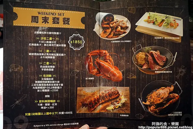 而在週末有"吃到飽"的個人消費套餐,每人NT$.1850+10%就可以吃這麼多東西,如果要"波士頓龍蝦吃到飽"則是NT$.2350+10%