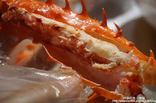 帝王蟹已經被朋友先剪開了,要小心牠外殼上的刺。