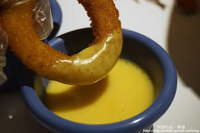 相信很多人都愛吃洋蔥圈,這裡的洋蔥圈不像有些很容易散掉,麵衣與洋蔥結合得很好。沾上蜂蜜芥末醬吃,帶點蜂蜜的香甜,有夠美味的!