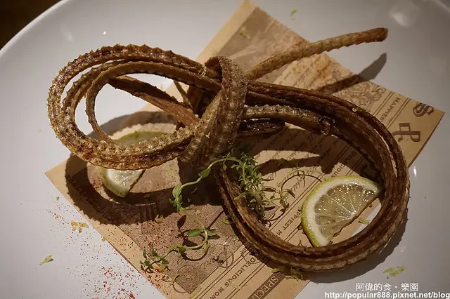 這是老闆另外招待的炸鰻魚骨,阿偉及兩位友人都是第一次吃,好酥好脆啊!也有鰻魚的香氣與甜度,是一道下酒小點(但我們都沒喝酒),哈哈!