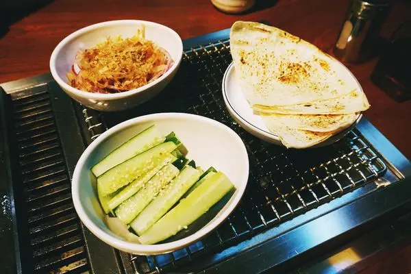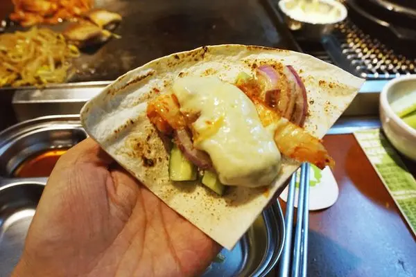 還有提供豆芽菜 泡菜 小黃瓜 墨西哥餅皮 涼拌柴魚洋蔥 讓顧客自己搭配