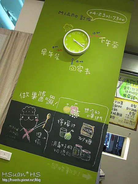幾點做什麼事都寫在牆上,18點關店時間到,客人們別待得太舒服忘了回家XD