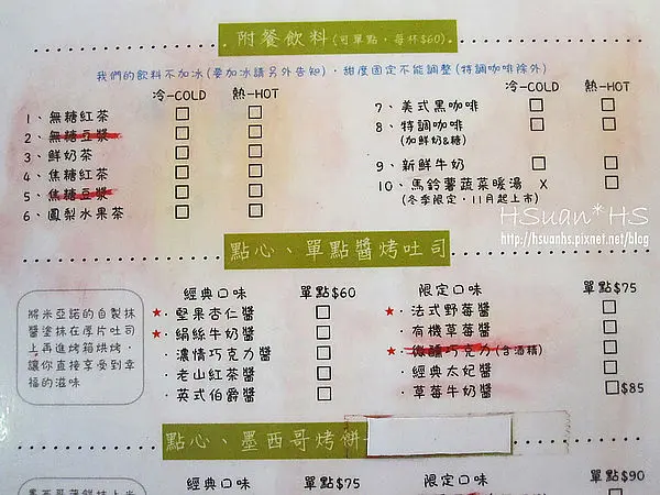 MENU (紅色蠟筆畫掉的只是代表當天已售完)