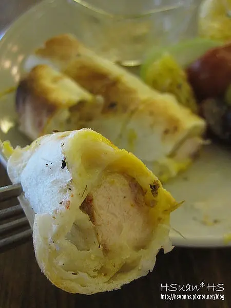 外表烤的微脆,裡面包了起士,咬起來有Q勁,拉開會牽絲呀~