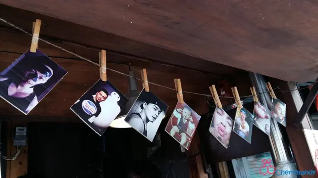 攤販上方的木夾照片,凸顯老闆的個人風格與生活記趣,