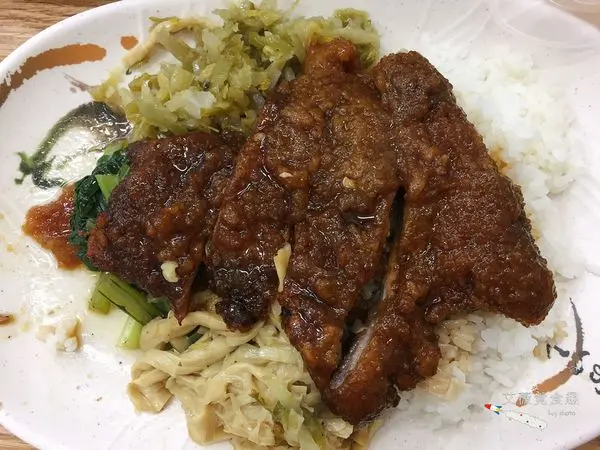 【台中南區】炸過再滷的排骨,鹹香的滷汁不錯,缺點就是肉質乾澀和外皮太厚 || 鄭家排骨飯 豬腳飯