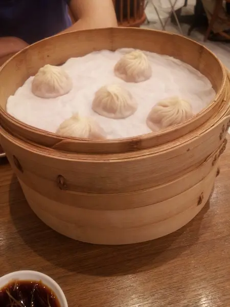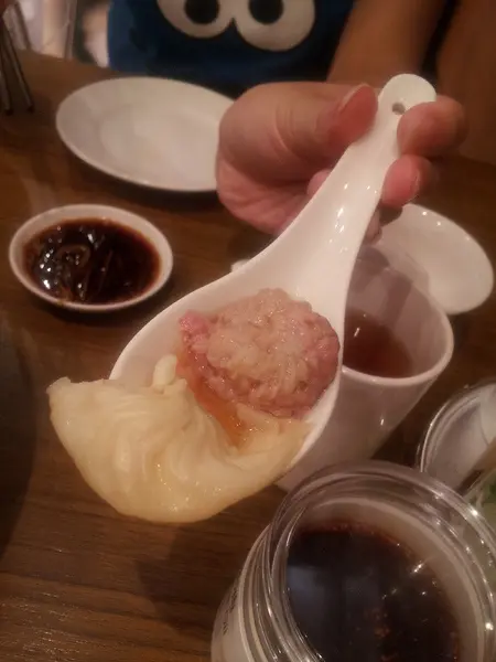 小籠包外觀很漂亮,每一顆看起來都一樣大, 只要輕輕一咬裡面的湯汁就會跑出來!非常多汁! 而且皮很薄,不過就算薄薄的還是吃的出他的皮略Q,