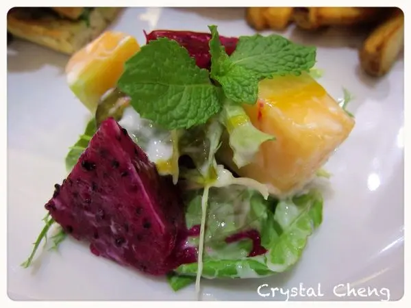 旁邊的沙拉就是百香果優格已經淋在上面了,