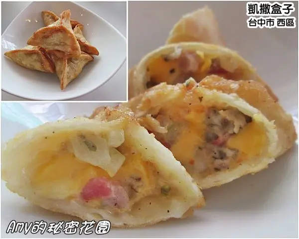 三角造型金勾錐,內餡有洋蔥、培根、D絞肉、起司、義式香料......