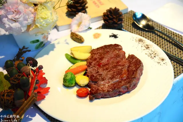 【香煎美國特選肋眼牛排襯季節鮮蔬佐法國第戎芥末籽醬:1380元(十盎司)】