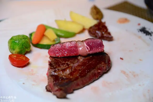 牛排送到嘴中,肉汁一直分泌,感受到牛排肉汁的甜美