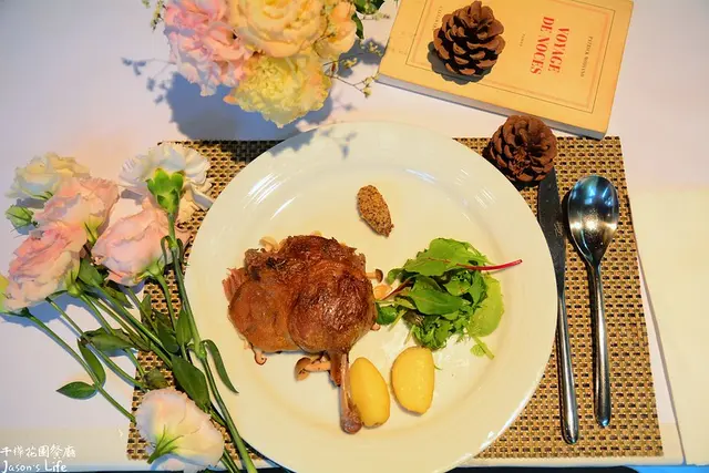 【油封鴨腿襯鮮炒新社綜合菇佐法式芥末籽醬:720元】