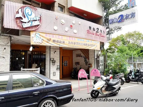 雙魚2次方位於一中商圈內,粉色系的招牌相當醒目