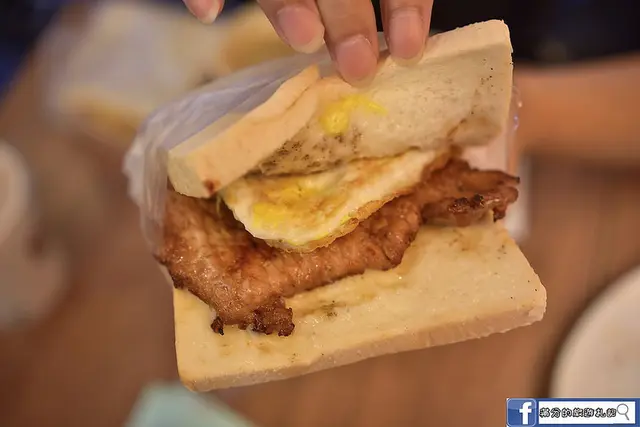 吐司夾餡美奶滋、大塊烤肉片和荷包蛋