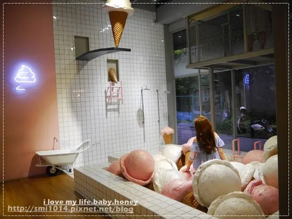 一到門口就可以看到黏在店外的甜筒冰淇淋,瞬間多了一股夢幻的感覺