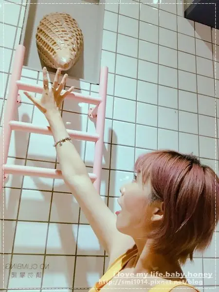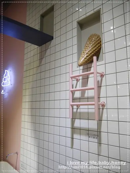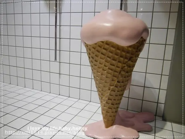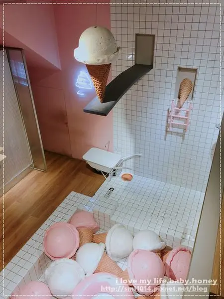 粉色甜筒融化後配上白色磁磚不知怎麼看起來就很可愛
