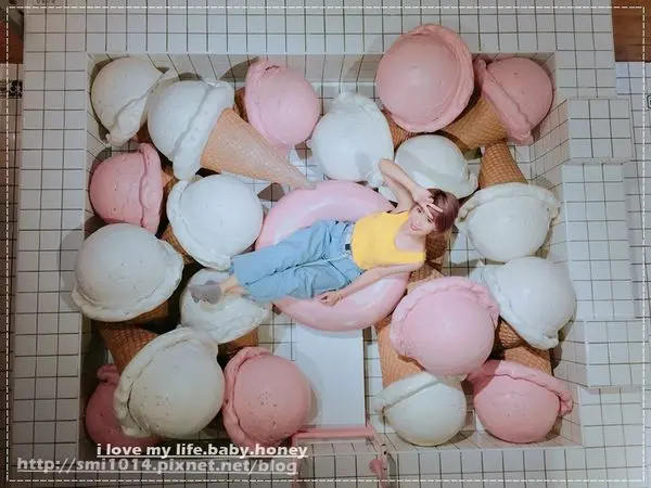 由上往下拍就是這樣的美景,整個人泡在甜筒泳池裡