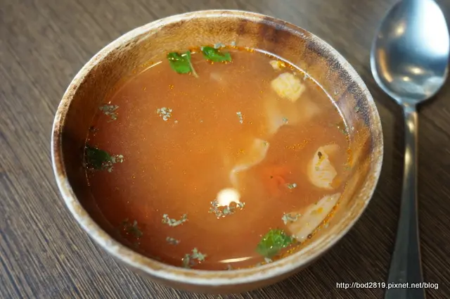 番茄湯很清爽,味道足夠,裡面還有一些蔬菜,