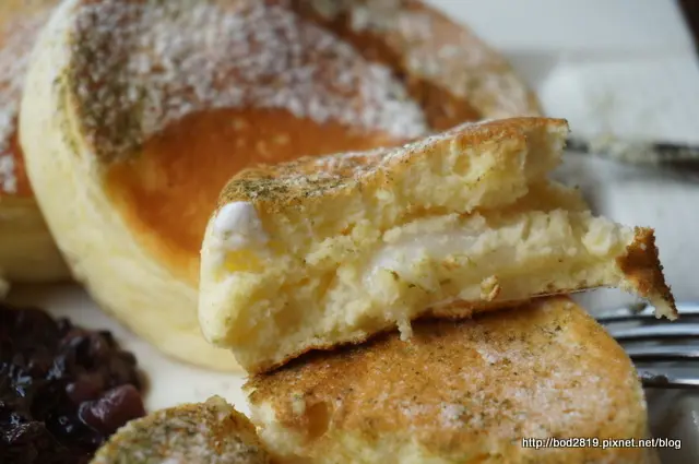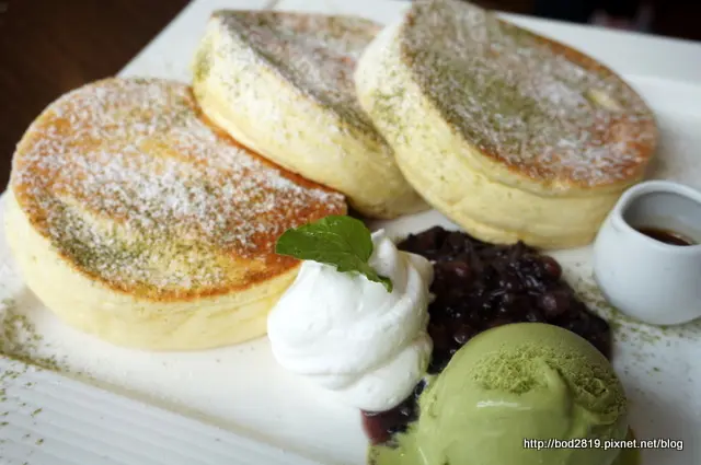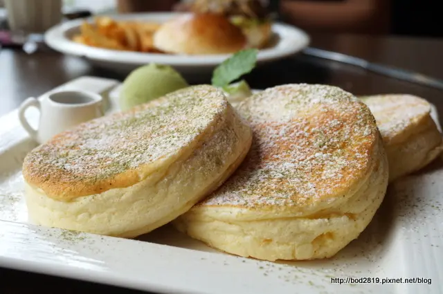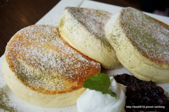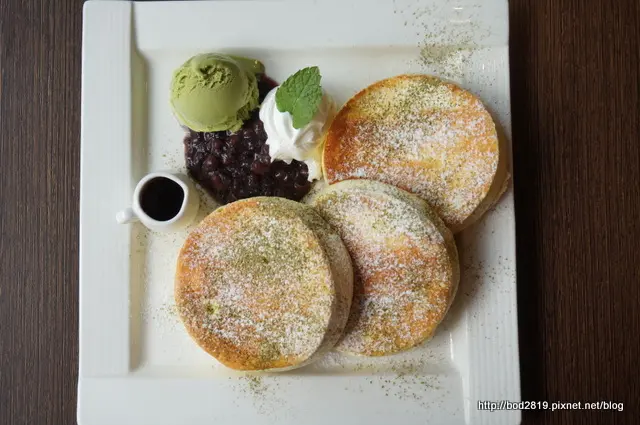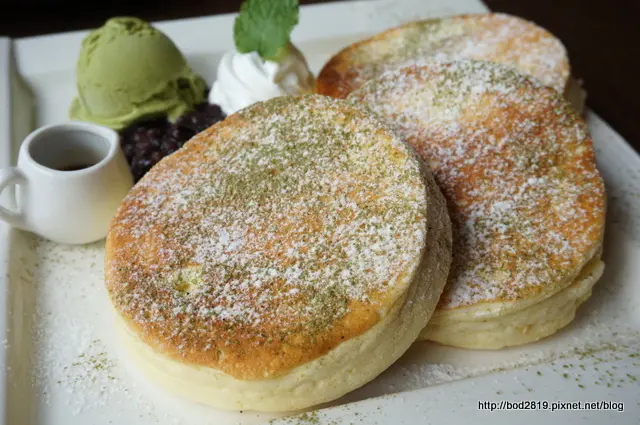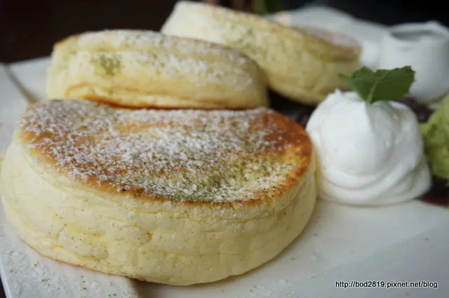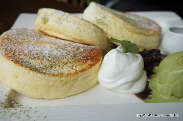 雖然抹茶鬆餅只是上面撒了抹茶粉,